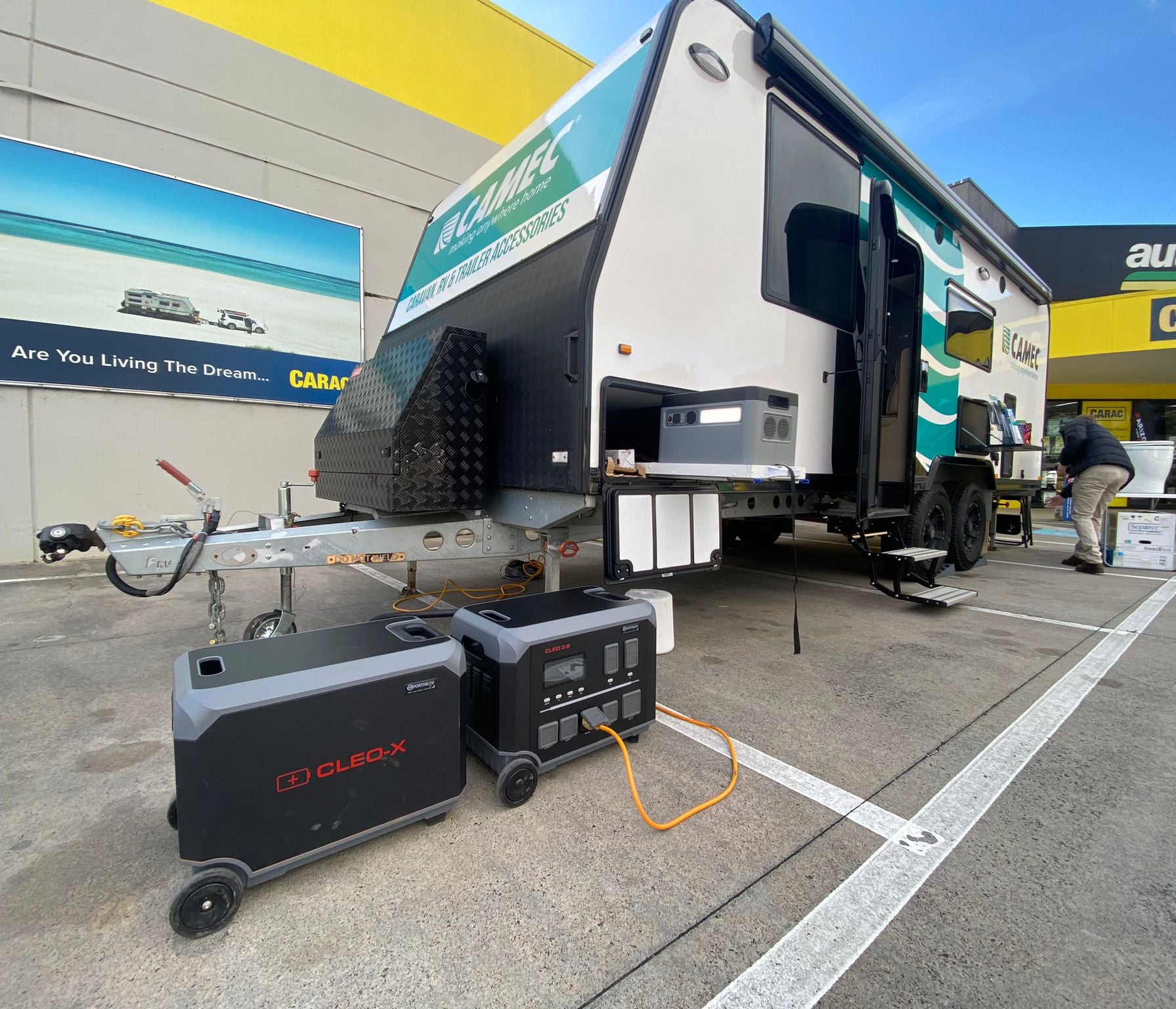 The Cleo 3.6 takes portable power to a new level. Offering a market-leading power-to-weight ratio and industry-best battery life (4000+ cycles to 80%), all in an IP54 enclosure, the Cleo 3.6 is setting a new standard for portable power. Packing both a 3.6kw inverter and a combined 40 amp 12 volt supply from its 3072Wh battery, Cleo 3.6 is built for serious hard work. The system has in-built protection and highly intuitive interface, meaning the unit is smart and safe, but still easy to operate. Capable of handling up to 1500w of solar and having an optional backup battery available (Cleo X), the Cleo 3.6 can be configured to power any situation.